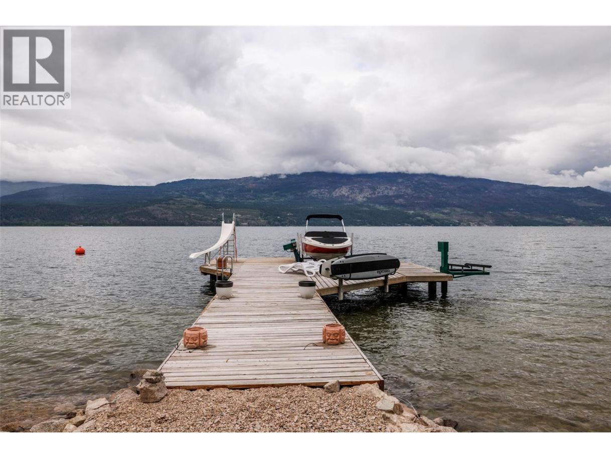 Dip your toes in the lake a mere 40ft from your front door! This lakeshore home is only 18 years old and sits on nearly 100ft of beautiful and private pebbled beach lakeshore. Enjoy your time floating on the water or sunbathing on the 60ft licensed dock with boat lift & wiring for a jet ski lift. Great depth for diving & swimming for the kiddies too. Plenty of privacy with the adjoining 260ft of beach being District of Lake Country property and only accessible by boat (and never used). Live year round with all the amenities & comforts of home or make it a private summer retreat. 2200 sqft, 3 Bedrooms + Den, 3 full Bathrooms, Geothermal aquafer heating & cooling, 2 propane fireplaces, open concept floor plan with granite counters, SS appliances and huge dining area for entertaining. Additional features include heated floors, push button winterization of the water system, plenty of parking, gated security and more. 1.23 acres of sloping land giving it the privacy & rural feel yet only 15 minutes from shopping and 20 minutes from Kelowna International airport. (id:6769)