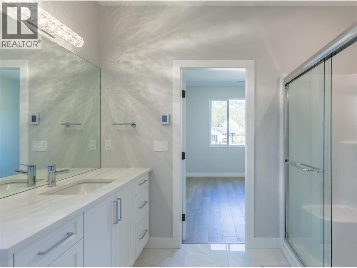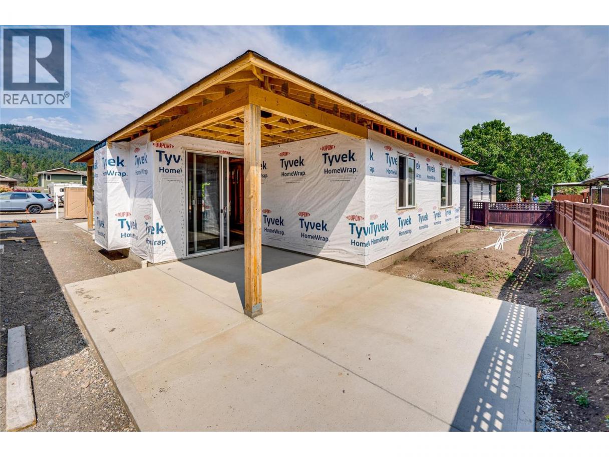 The Juniper - Under Construction, brand new ranch style home in the beautiful lakeside community of Parker Cove. Quality built by Scotland Homes, the Juniper is a level entry rancher featuring 3 beds and 2 baths. Step inside to discover the open concept layout with spacious living room featuring propane fireplace and sliding glass doors onto the covered back deck, offering seamless indoor-outdoor living. A large dining room is just off of the fantastic chef's kitchen with ample cabinets and quartz surround countertops, and stainless steel appliances. The primary bedroom is flooded in daylight, and features large ensuite with generous size shower and walk in closet/built ins. Two additional bedrooms, full bath, and laundry round off the living areas. Attached two car garage. 200 amp service. Parking for two in driveway. Parker Cove provides a myriad of recreational activities - Enjoy sunny days at the beach, take a dip in the swimming area, launch your boat at the community boat launch, enjoy the community playground and ball diamonds. Parker Cove is a leasehold community, 602 Nighthawk features a registered lease extending to 2056. Experience affordable waterfront living and the Okanagan lifestyle at Parker Cove. Home is under construction and can be ready in approx 2-3 months. Parker Cove is located 30 minutes from Vernon. 602 Nighthawk features fantastic location in the community of Parker Cove, just a few minutes walk from the lakefront. (id:6769)
