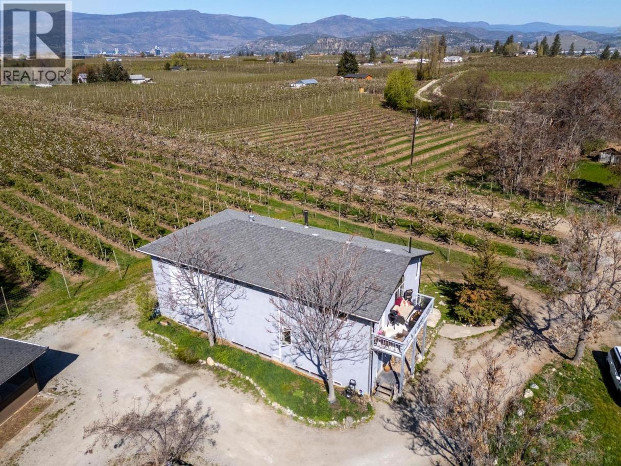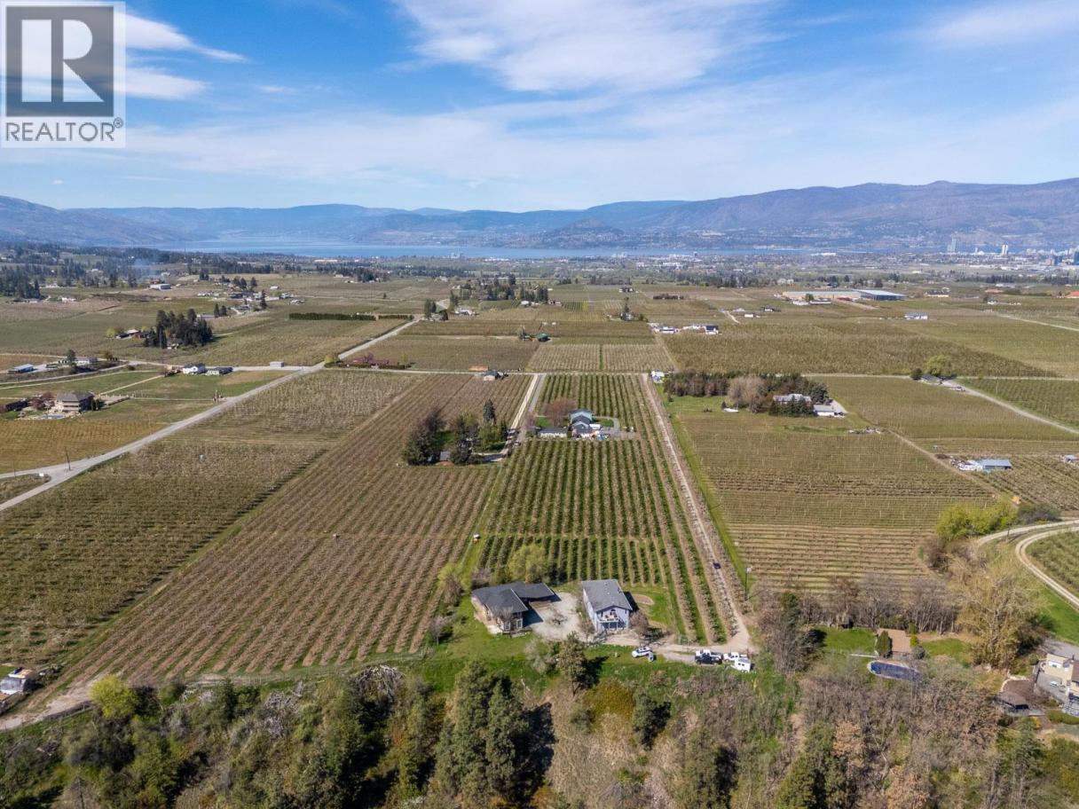 Welcome to a rare offering of 5.68 acres in the heart of Southeast Kelowna, surrounded by renowned orchards and established wineries. With just over one acre of apple trees currently leased, this property offers a unique opportunity to generate passive income while enjoying the beauty of rural living. Privately tucked behind an automated gate and accessed via a picturesque tree-lined driveway, the setting is peaceful, usable, and incredibly private. The 2002-built home offers over 2,500 square feet of thoughtfully designed living space, featuring three bedrooms plus a den and two and a half bathrooms. Inside, you’ll find two generous living areas and a second-floor primary retreat complete with its own lounge, creating a private escape within the home. Outdoors, a level lawn and multiple lounging areas provide the perfect backdrop for entertaining or relaxing, all while taking in the surrounding farmland views. The expansive detached shop adds exceptional flexibility with a garage, workshop, and a studio in-law suite, ideal for extended family, workspace, or additional income. For those with a long-term vision, the property also offers an opportunity to demolish and build your dream home in this highly desirable setting. Backing onto the scenic trails of Mission Creek Greenway and Scenic Canyon Regional Park, outdoor recreation is hikeable from your doorstep. Despite the tranquil, rural feel, you’re just minutes from city amenities including Costco Wholesale Kelowna, Kelowna International Airport, and premier golf courses such as The Harvest Golf Club and Gallagher's Canyon Golf & Country Club. This is a rare opportunity to secure acreage, income potential, and lifestyle in one of Kelowna’s most sought-after rural communities. (id:6769)