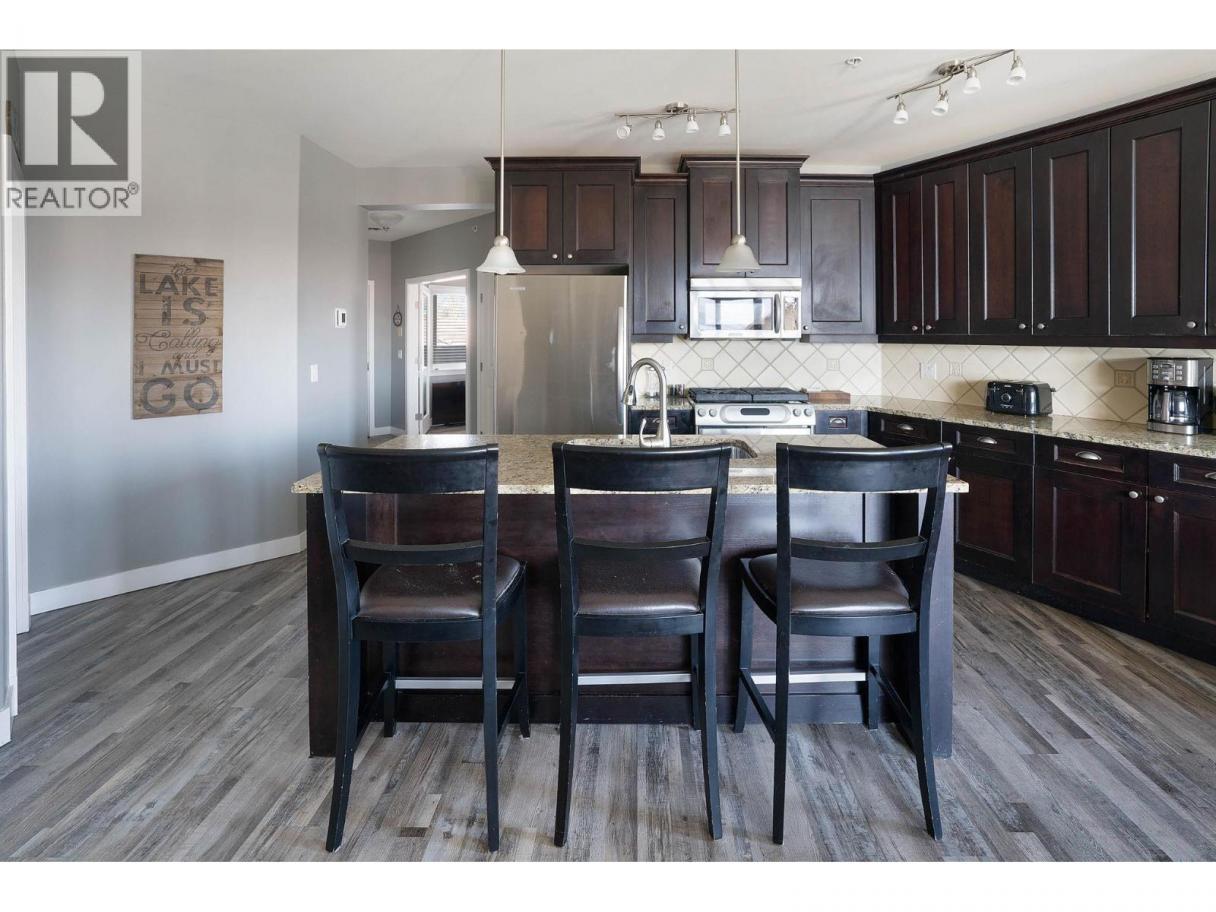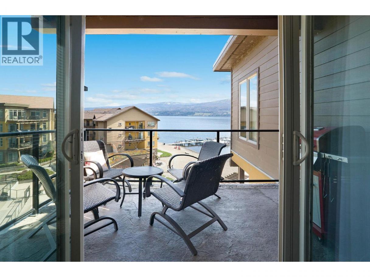 Indulge in the ultimate Okanagan lifestyle with this rare top-floor retreat, situated in a premier beachfront complex that still permits short-term rentals. Whether you're lounging on 600 feet of private sandy beach, enjoying the heated pool and hot tub, or exploring the nearby West Side Wine Trail, this resort offers an unparalleled vacation experience with amenities including a fitness center, theatre room, and community gardens. The unit itself is perfectly positioned for panoramic views and comes fully furnished and turnkey, featuring a spacious layout with two bedrooms plus a den (used as a third bedroom). Recent premium enhancements include newer flooring and paint, a brand-new gas range, a new washer and dryer, and brand-new King and Queen beds and mattresses. Complete with a parking stall and storage unit, this property also offers the exclusive opportunity to purchase Boat Slip B10 for an additional $60,000, which is fully equipped with a 7,000 lb lift and a new solar cell and batteries. (id:6769)