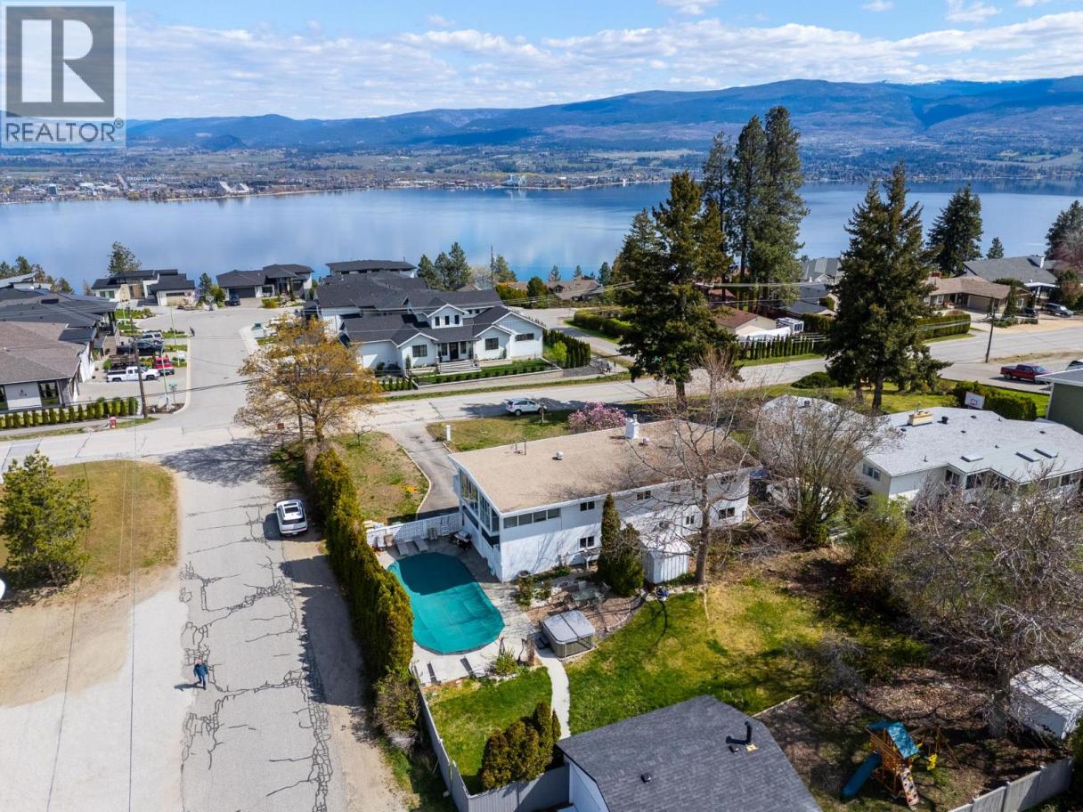 Rare opportunity in highly sought-after Lakeview Heights offering a 0.37 acre corner lot with lake and mountain views, privacy, and subdivision potential, making it ideal as a holding property, investment, or future development. The bi-level home features 5 bedrooms and 3 bathrooms with a bright main level, sunroom, and front veranda capturing lake views, while the lower level offers a fully finished 2 bedroom suite with separate entrance and short-term rental potential. The property includes a detached garage, ample parking for RVs, boats, and multiple vehicles, and a private backyard with an in-ground pool and generous outdoor space. Conveniently located near shopping, wineries, parks, and Okanagan Lake, this property offers a strong combination of lifestyle, income, and future potential. (id:6769)