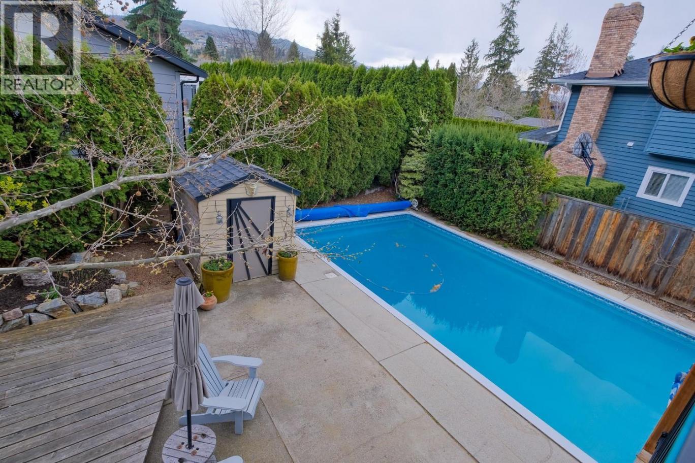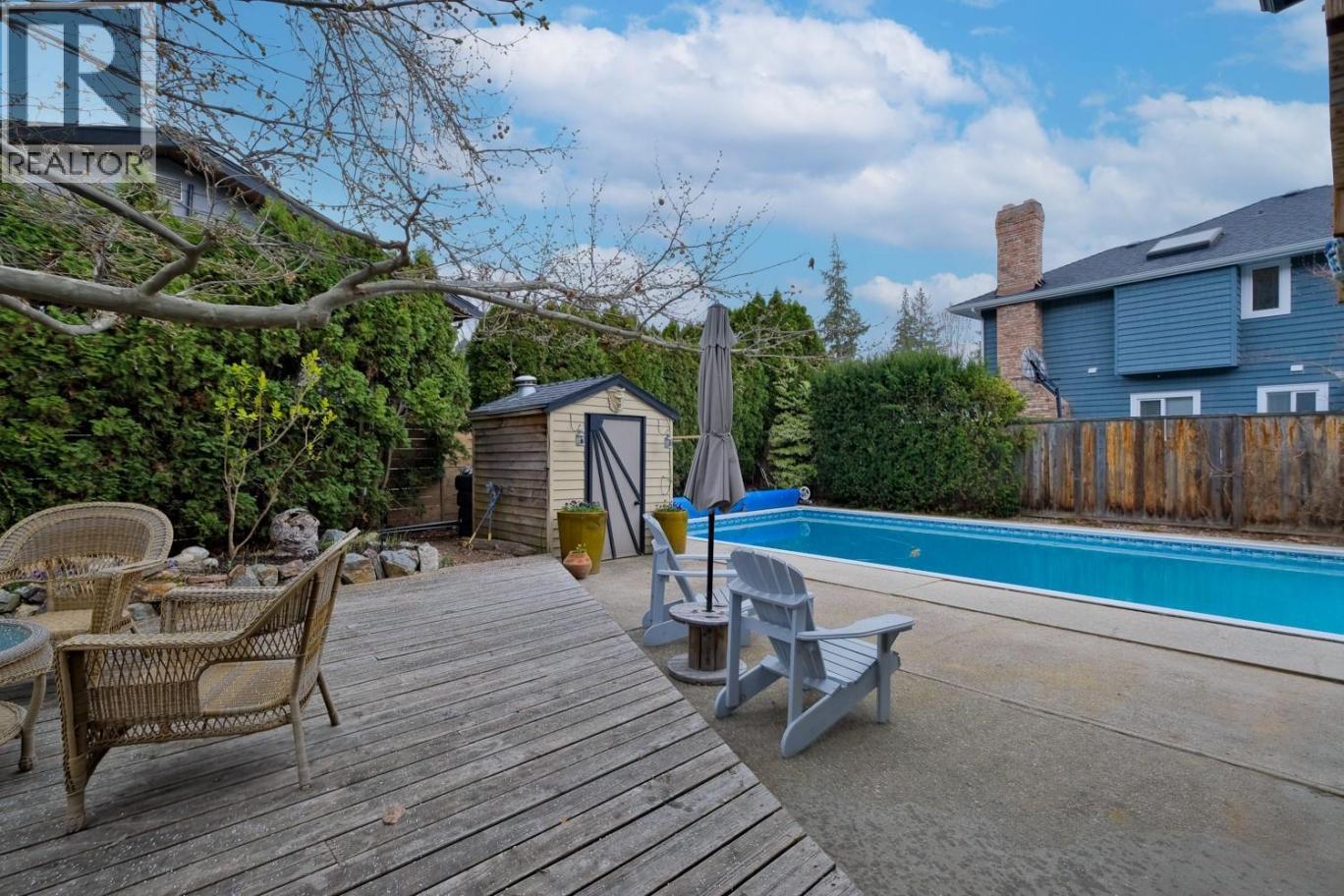 A lovely home, tastefully updated in one of the most desirable locations in Kelowna. Full of natural light, open spaces and convenient indoor outdoor living this home is warm, inviting and great to either entertain or spend quiet time. Walk in to a bright spacious foyer with durable Saltillo tile flooring and room everyone's shoes and coats! The living room has vaulted wood ceiling open to spacious dining, a well designed kitchen with 6 burner dual fuel range, free standing island, loads of counter space for work or entertaining. The main living space opens to covered deck area, view of the pool, surrounding greenery and private back yard with mature landscaping including a gorgeous London Plane. There is a cozy studio/office room with separate entrance off the garage, which is currently part of the studio. The garage has 220 power. The beautiful one bedroom garden suite has lots of built ins and double garden doors out to raised garden beds and pool area. Significant renovations with kitchen, bath, windows, flooring appliances all updated. Wood burning f/p up, gas insert in f/p down. Hot water on demand, b/i vac and attachments, lots of out door storage, concrete pad for RV or boats, and back yard is fenced. Close to hiking trails, a quiet street with schools only minutes walk away, a quick ride to the lake and beaches. This is a lovely place to call home. (id:6769)
