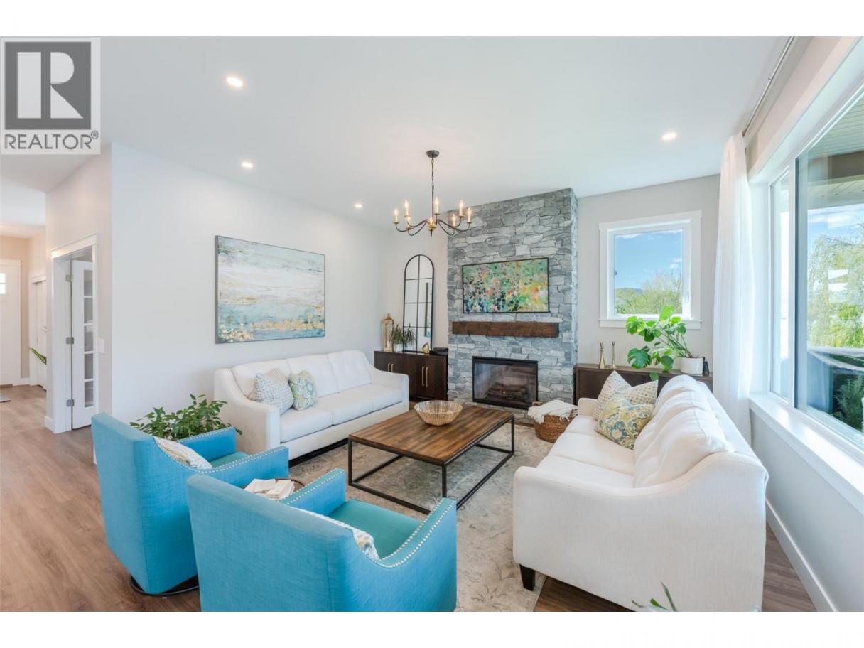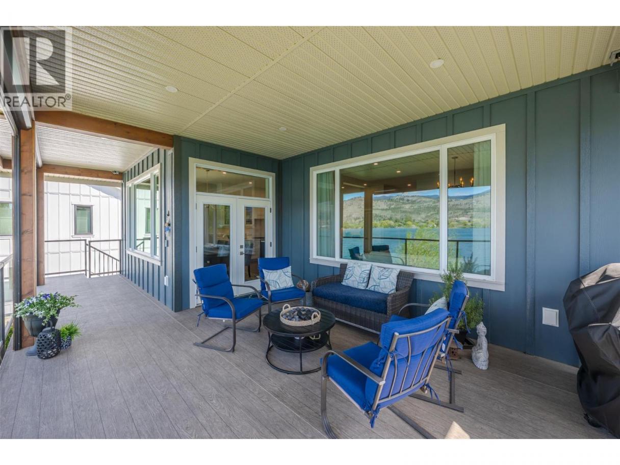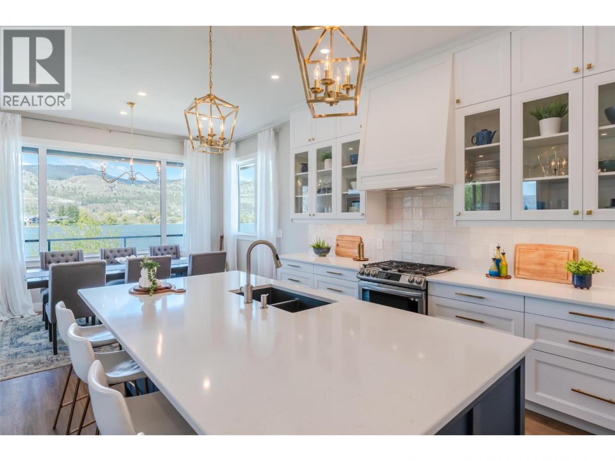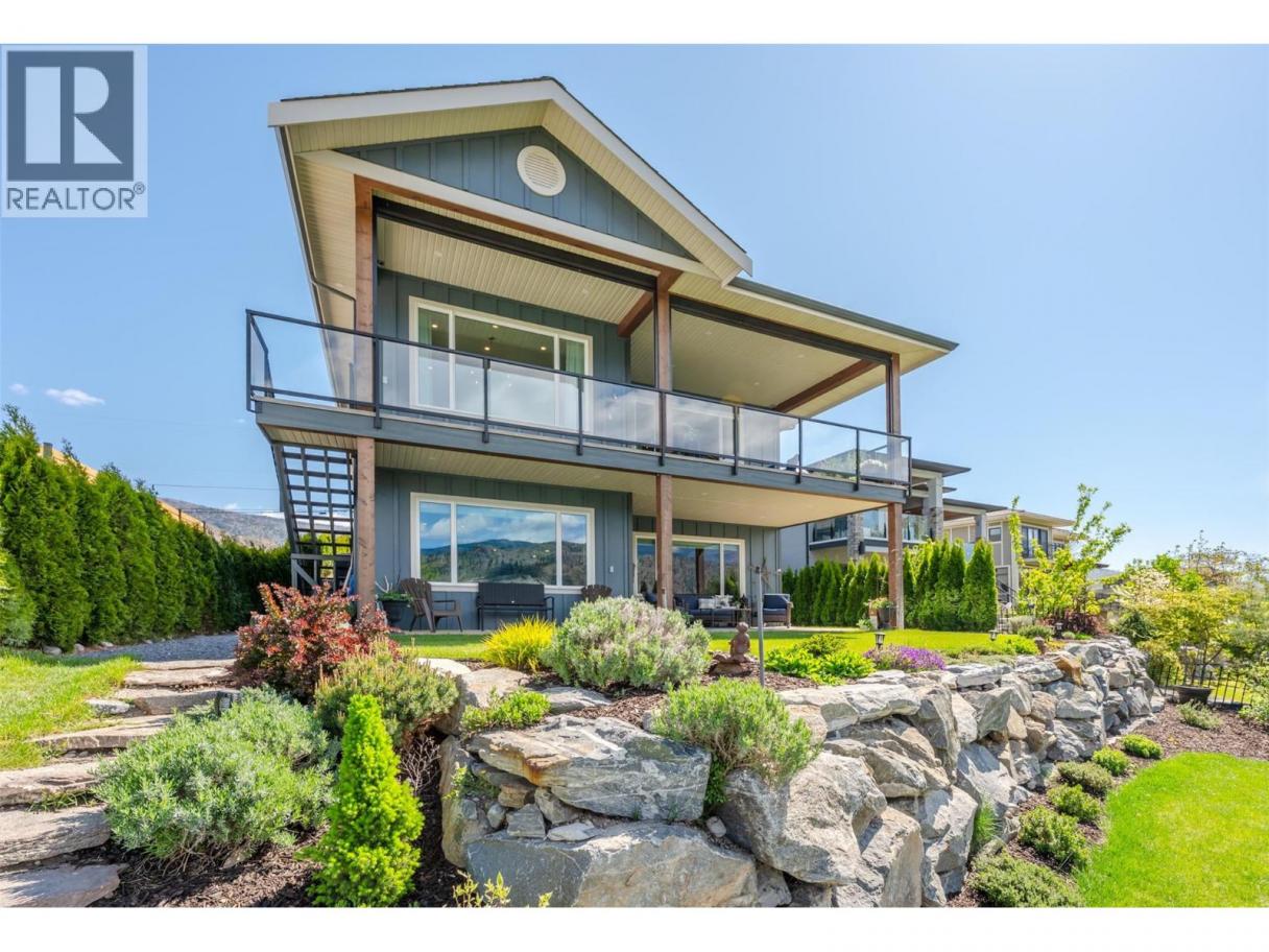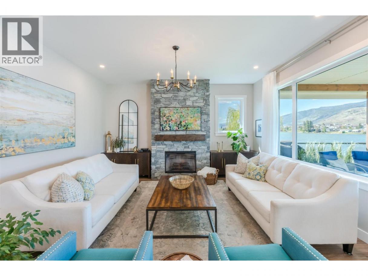 Experience refined lakeside living in Canada's Wine Capital! Framed by sweeping mountain vistas in the sunny South Okanagan, this nearly-new, custom-built, Craftsman-inspired residence on spring-fed Tucelnuit Lake offers an exceptional, rarely available lifestyle opportunity. Designed for contemporary living, the principal residence features soaring ceilings, and oversized windows that flood the interiors with natural light. The main level boasts an entertainer's dream kitchen with massive island, solid surface counters, duel-fuel range, and storage galore, plus bright, open living spaces that flow seamlessly to the expansive rear deck. This level also features the generous primary suite with spacious walk-in and indulgent spa bath. Two stacked-stone gas fireplaces serve as focal points for the living room and the spacious, lower-level recreation room with full kitchen and walk-out to the covered patio, rear yard, and lake beyond. 2 additional bedrooms, full bath and laundry complete the lower level. The detached carriage house provides flexibility for extended family, guests or rental income. Enjoy the peaceful, electric-motor-only lake ideal for swimming, kayaking, paddleboarding, canoeing and fishing. Just minutes to the District Wine Village, Area 27 Racetrack, and premier golf courses, and with Mount Baldy Ski Resort just a scenic 40 minute drive away, this home offers a true 4 season lifestyle in an idyllic setting. Dimensions approximate. Buyer to verify if important. (id:6769)