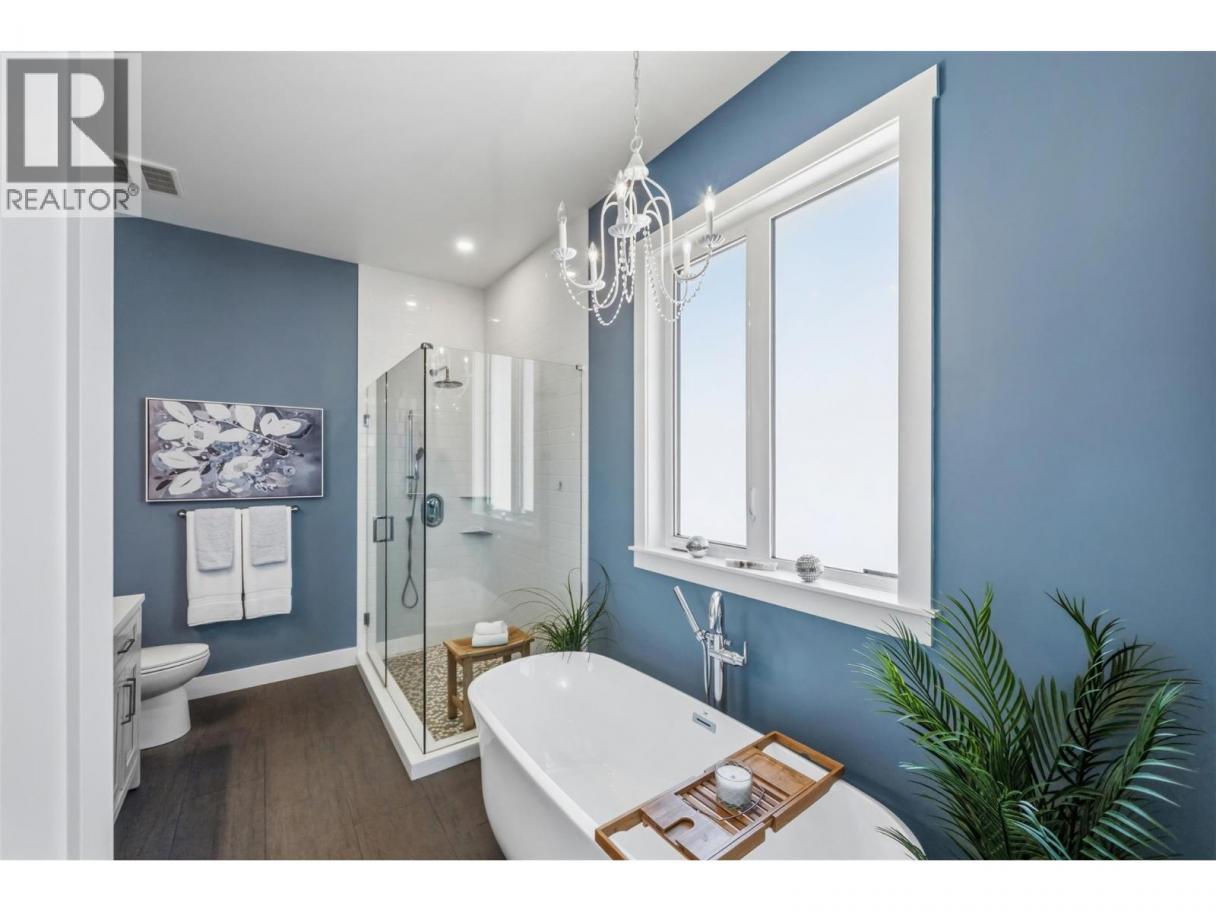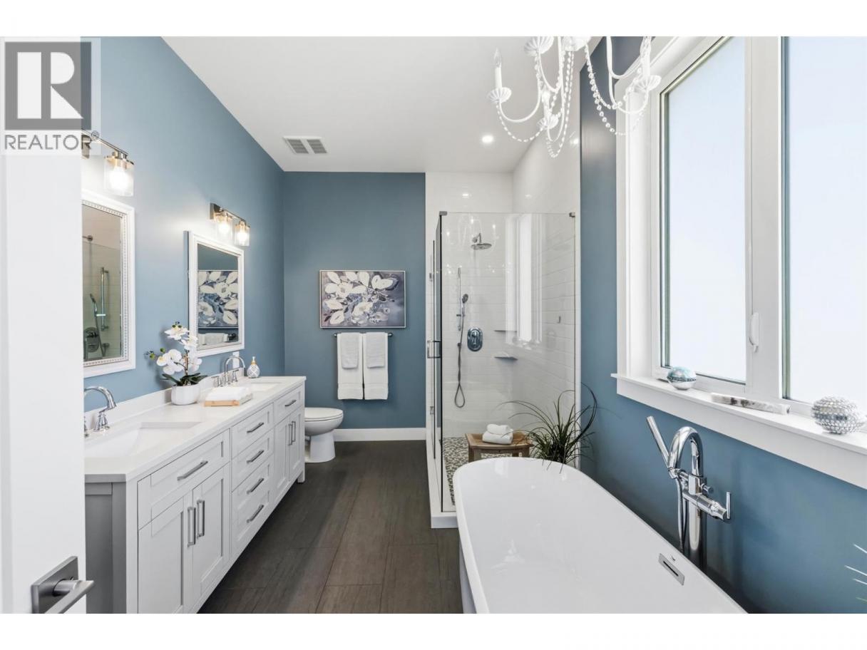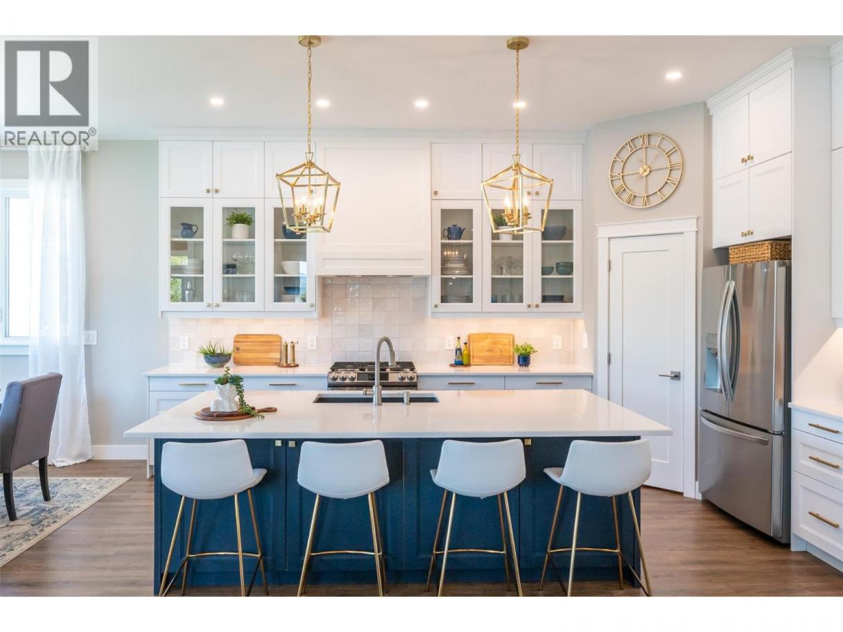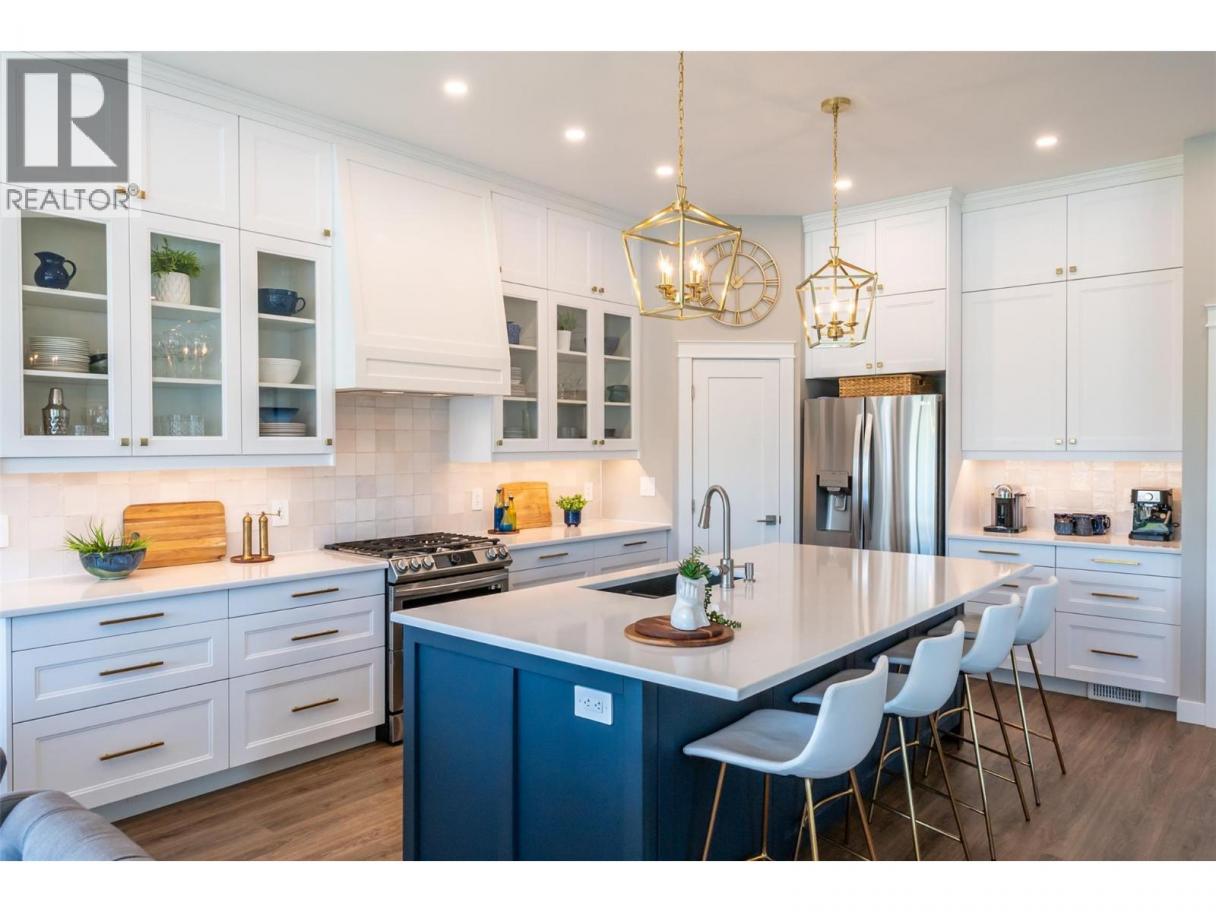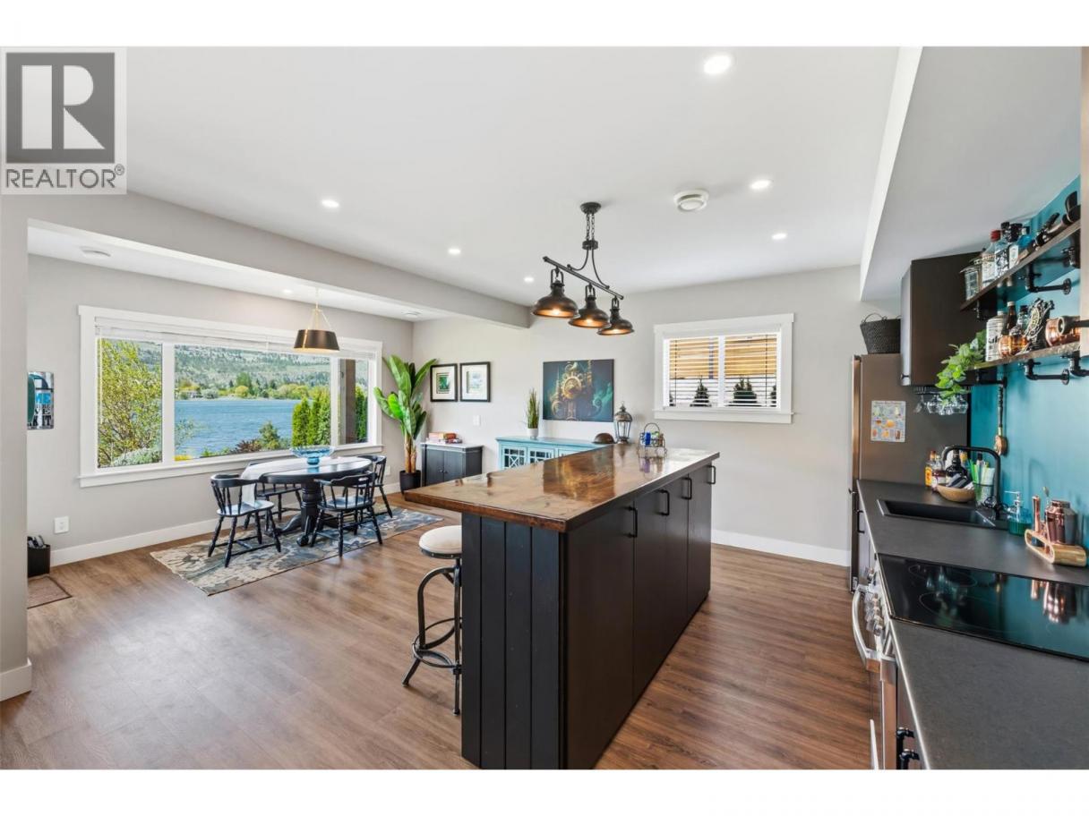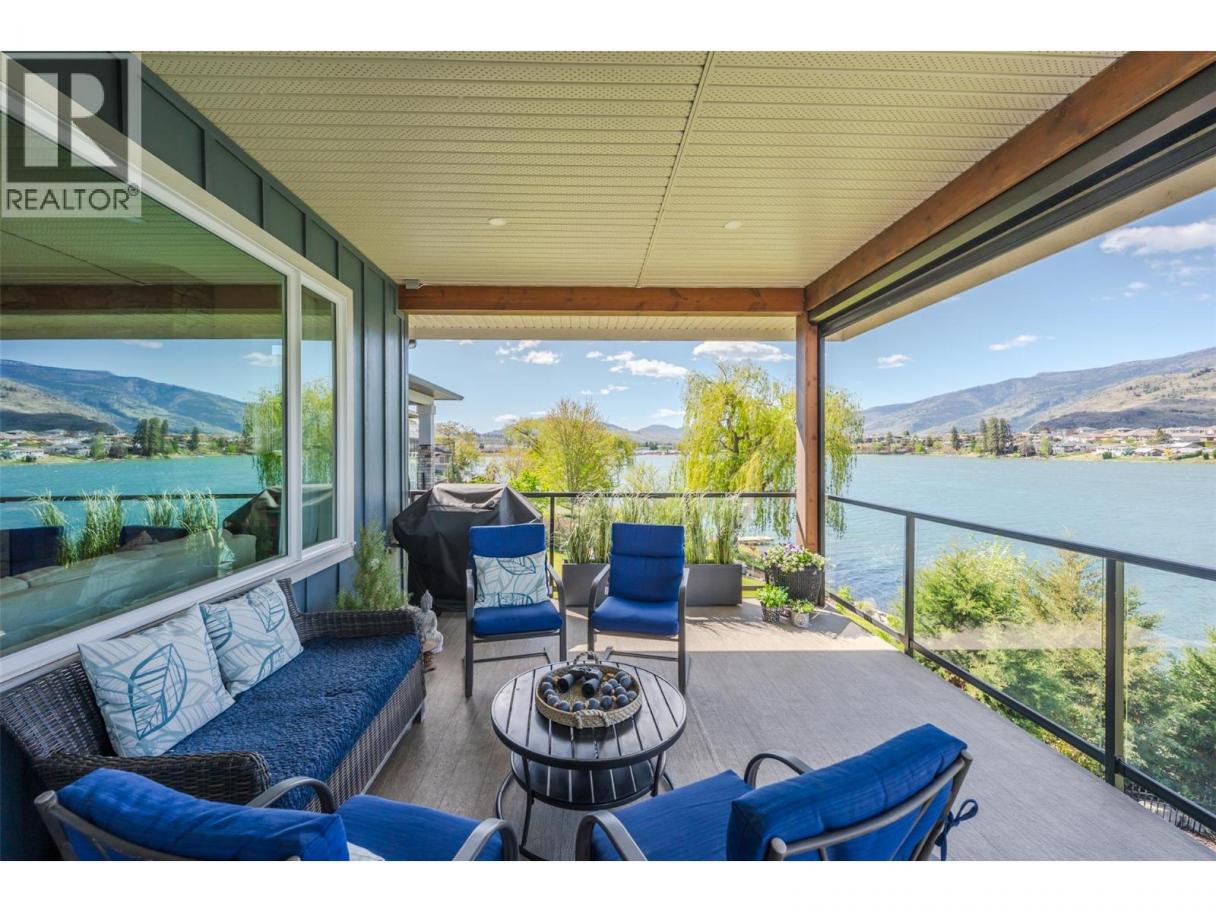 Experience refined lakeside living in Canada's Wine Capital! Framed by sweeping mountain vistas in the sunny South Okanagan, this nearly-new, custom-built, Craftsman-inspired residence on spring-fed Tucelnuit Lake offers an exceptional, rarely available lifestyle opportunity. Designed for contemporary living, the principal residence features soaring ceilings, and oversized windows that flood the interiors with natural light. The main level boasts an entertainer's dream kitchen with massive island, solid surface counters, duel-fuel range, and storage galore, plus bright, open living spaces that flow seamlessly to the expansive rear deck. This level also features the generous primary suite with spacious walk-in and indulgent spa bath. Two stacked-stone gas fireplaces serve as focal points for the living room and the spacious, lower-level recreation room with full kitchen and walk-out to the covered patio, rear yard, and lake beyond. 2 additional bedrooms, full bath and laundry complete the lower level. The detached carriage house provides flexibility for extended family, guests or rental income. Enjoy the peaceful, electric-motor-only lake ideal for swimming, kayaking, paddleboarding, canoeing and fishing. Just minutes to the District Wine Village, Area 27 Racetrack, and premier golf courses, and with Mount Baldy Ski Resort just a scenic 40 minute drive away, this home offers a true 4 season lifestyle in an idyllic setting. Dimensions approximate. Buyer to verify if important. (id:6769)