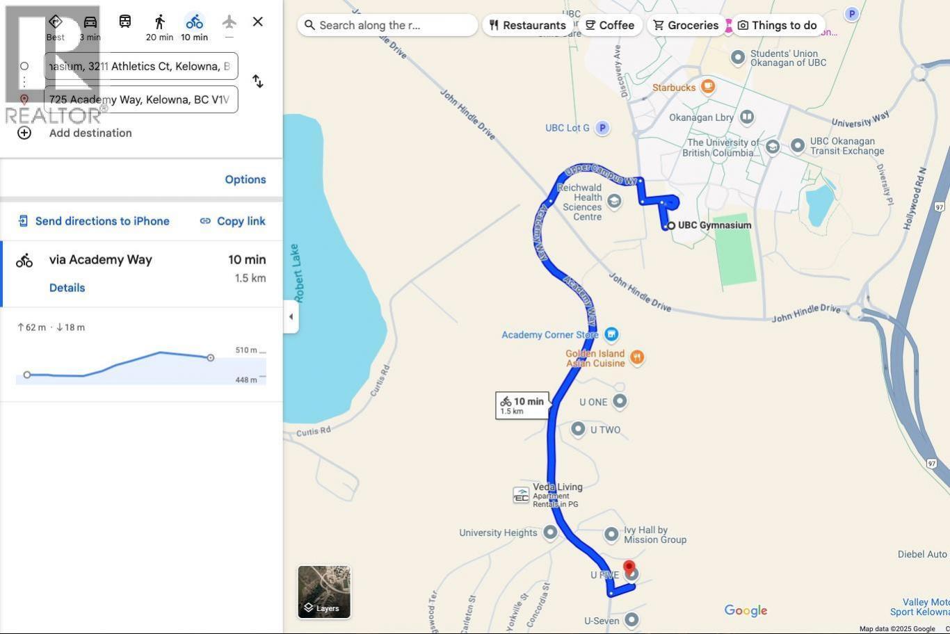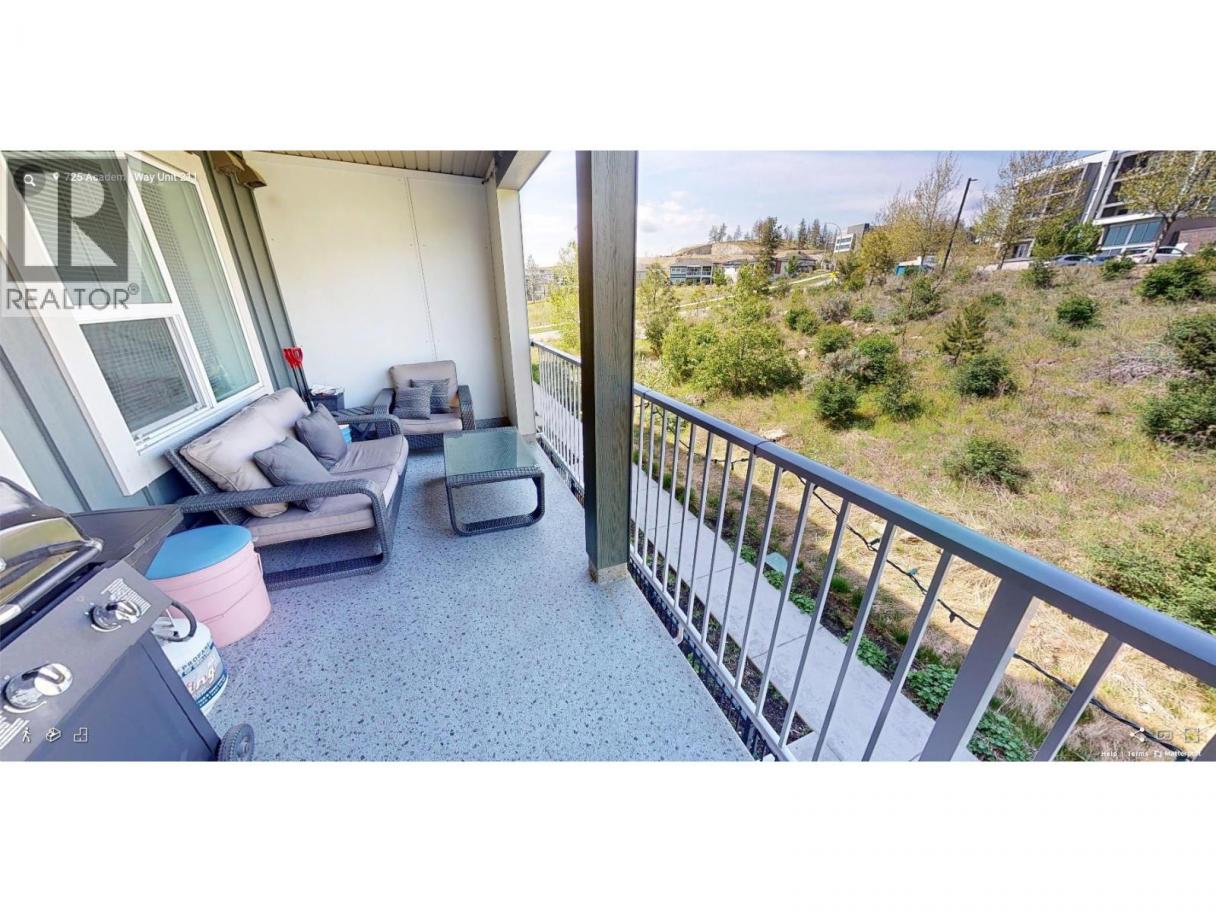Don't miss this 'Vacant as of May 1st' Prime 3 Bed 3 Bath Fully Furnished 'Turn Key' 2nd floor quiet condo at the popular student housing area within walking distance to UBCO - Welcome to #211 - 725 Academy Way! Located just South of UBC Okanagan at U-Five in the University District – a thriving off-campus neighborhood where students can work, live and play. This beautiful and well appointed condo includes 915 sq. ft of living space with a 21 Ft covered deck overlooking the serene garden area on the quiet side of the building! The Kitchen features two-tone kitchen cabinets, island to prepare and dine at, with stainless-steel appliances, and all dishes and linens, that opens onto the living room with access to the outdoor patio (allows bbqs). Complete with in-suite laundry and a bathroom for each bedroom (two private en-suites and a third stand-alone bathroom). The University District offers direct access to restaurants, breweries, shopping, public transit, Kelowna International Airport, Bear and Quail Golf Courses, and Okanagan Rail Trail. This is an excellent opportunity to own if a family member attends UBCO, or you are looking for an great investment. Rentals are allowed, with restrictions (min. 30 days - Estimating $3,200 - $3,500 / month.) and pets are also allowed with restrictions (up to two dogs, or two cats, or one dog and one cat). 1 extra long secure Parkade stall allows for 2 smaller cars to be parked 'tandem', located close to the elevator. 24 hrs notice please. (id:6769)